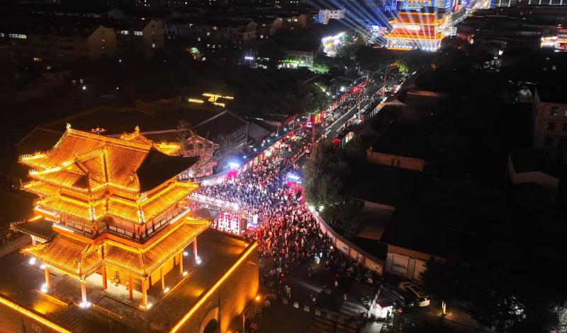 俯瞰张家口市宣化区热闹红火的钟鼓楼文化商业街区 米剑飞 摄